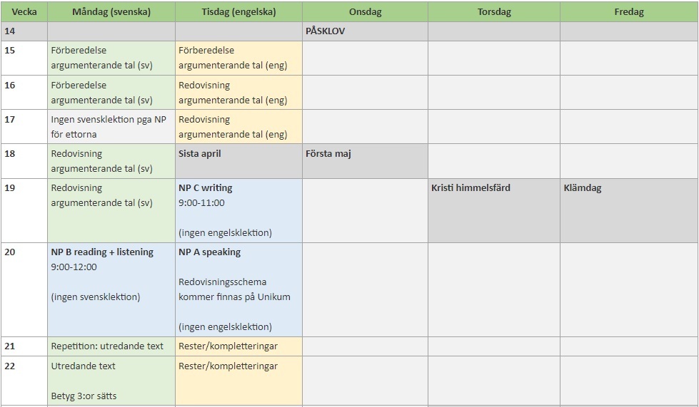 Veckoplanering resten av terminen