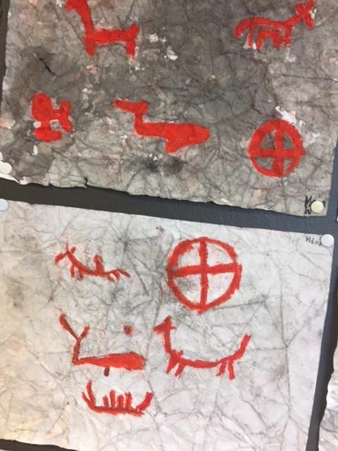 Skapa din egen hällristning i papper och färg. Måla det som beskriver din vardag. Hur skulle en hällristning se ut som visar hur vi lever idag?