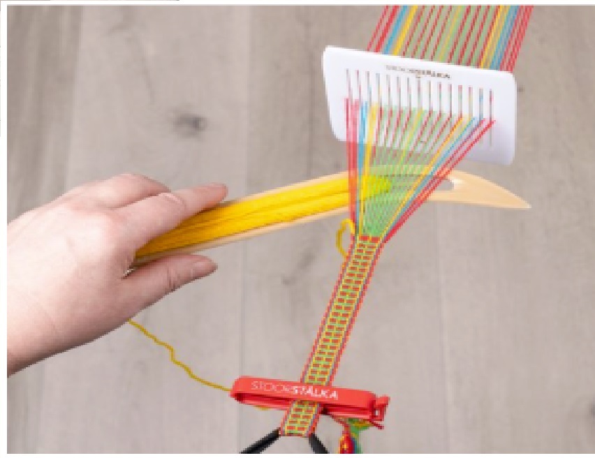 I detta arbetsområde kommer du att väva egendesignat band i bandgrind. Du kommer även att få lära dig mer om vävning som teknik och dess historia och hur man gör band på en bandgrind.